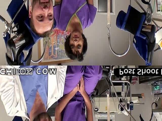 College freshman Jackie Banes experiences intense orgasms with Hitachi Magic Wand from naughty nurses during physical exam at Hi