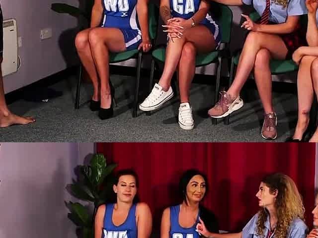 CFNM college and cheerleader babes jerk