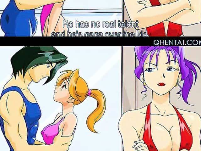 Busty hentai gymnast giving BJ to her coed gets fucked hard