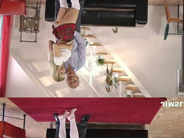 Nice blonde babe in school uniform get banged on a table