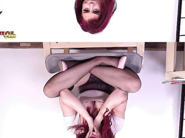 Redhead coed bends over for anal drilling