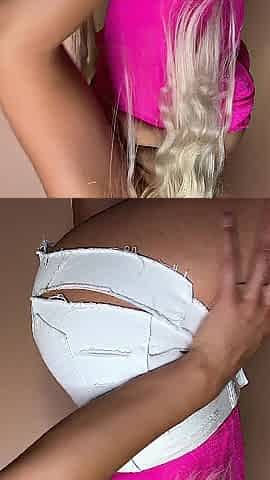 Beautiful Skinny College Girl Takes All the Cum on Her Dress After Long Slow Cock Teasing Handjob with Oil and Creme