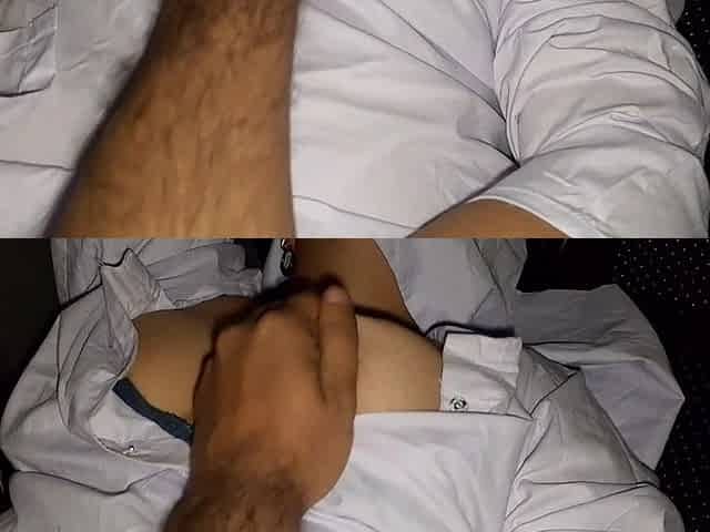 Sexy Girl in Babydoll Jumping with Husband Friend Alone