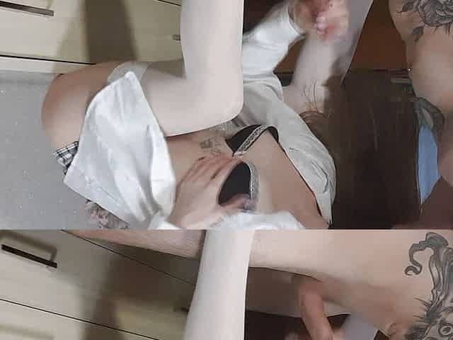 College girl in plaid skirt masturbates after class