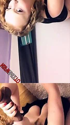 NAughty blonde girl is stimulating her cherry with a toothbrush