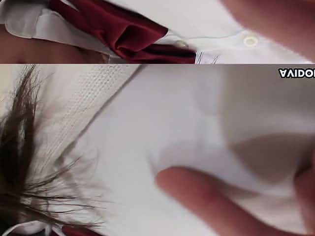 Beautiful kawaii Japanese coed chick Azusa Miyanaga pulls her skirt up to go solo