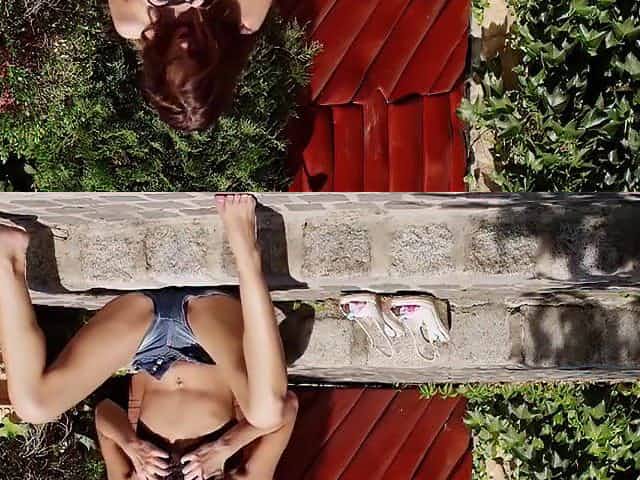 Slim college girl masturbates and orgasms outdoors