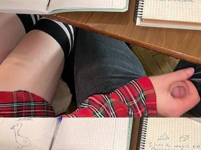 AFRESH SCHOOLGIRL TUGJOB CLASSMATE BELOW THE TABLE ON THE LESSON