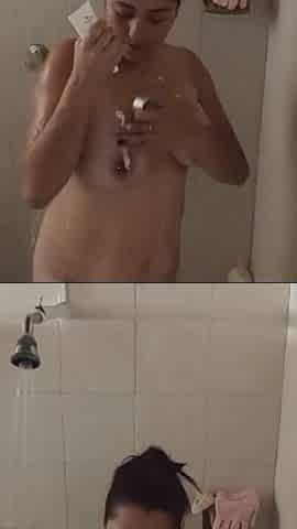 Husband's buddy fucks hot black-haired mummy in shower - gonzo porn!