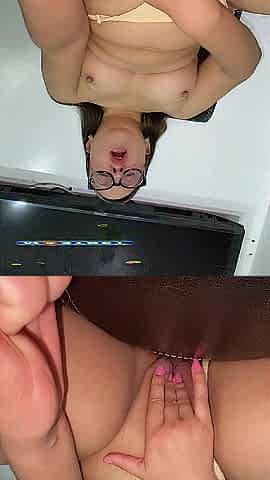 Petite with Glasses and Very Elastic Makes a Big Stream of Squirt