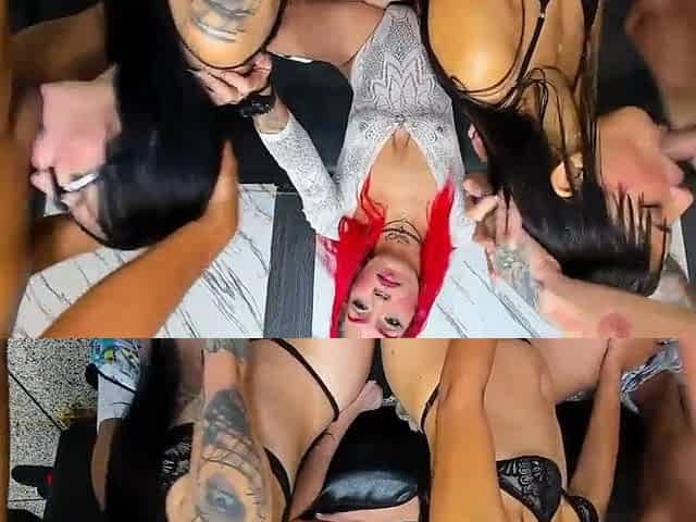 Lewd Tiny Colombian Duet Take Turns Unfathomable Throating Large Ramrod In Wild FFM Trio