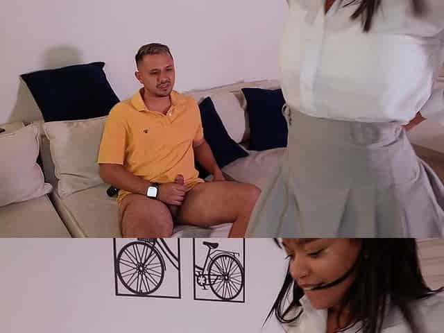 I surprise my stepson with a birthday gift to jerk off to his sexy Colombian doll