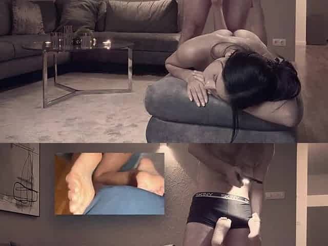 Encuentro a mi esposa desnuda con dos hombres y me folla duro para distraerme