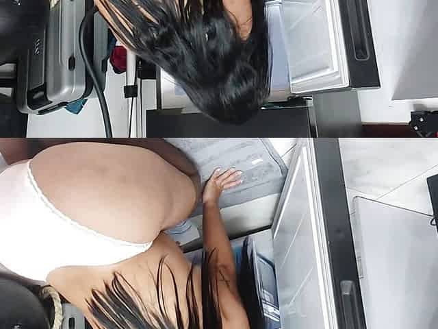 "Filming the voluptuous maid cleaning the fridge"