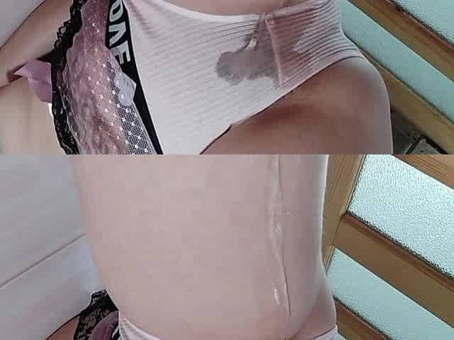 A twat pissing in her white pants. A brunette hair voids urine a lot at home.