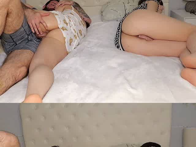 Stepfather joins wife and stepdaughter for a wild threesome with lots of squirting action