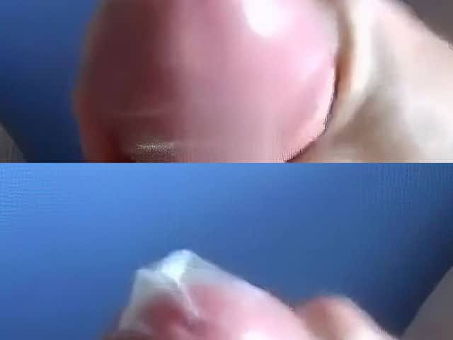 girl masturbates with a condom filled with a banana on the bathroom floor