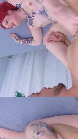 Tattooed Redhead and Naughty Girl Likes to Fuck Her Friend Without a Condom