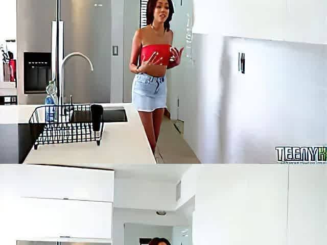 Nerdy teen loves to rail her innocent labia on top of a massive rod!