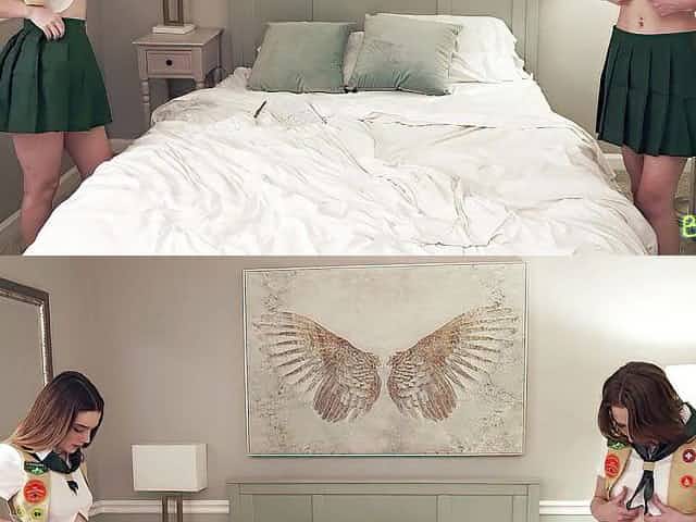Beauty contest winers Cadence Lux and London Keys wait for a cum shot