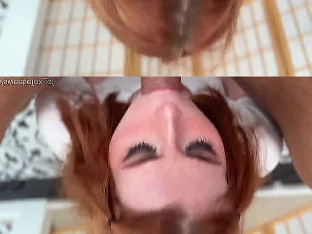 Skillful amateur teen with small tits deepthroats massive rod for a creamy reward