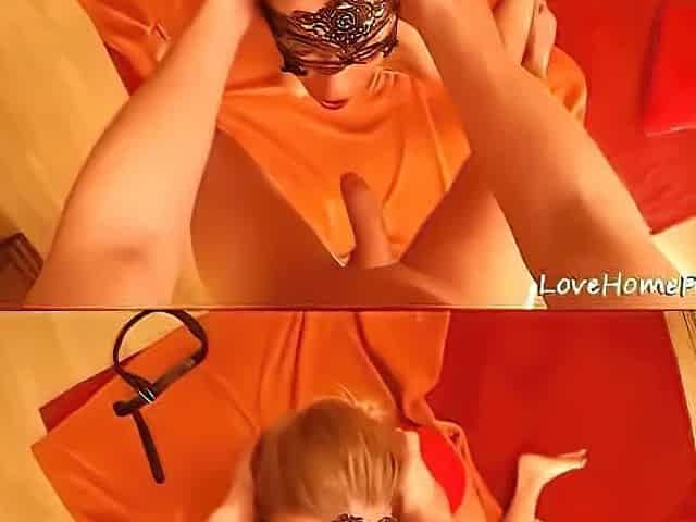 Rough sex for a girl in a red dress and a mask