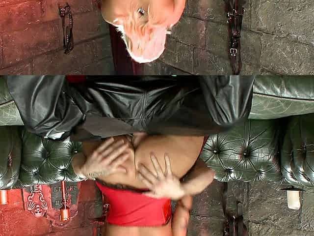 Kinky blonde in her leather corset never being so horny