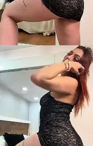 Lady takes off her white pants and Dancing stiptease. Show snatch.