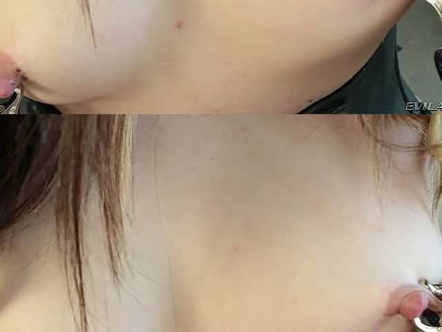 Tight latex corset on a big titty babe fucking huge toys