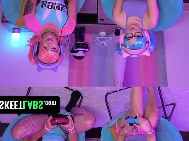 Leana Lovings And Krissy Knight - Gamer Girls Get Their Juicy Pussies Fucked While Playing