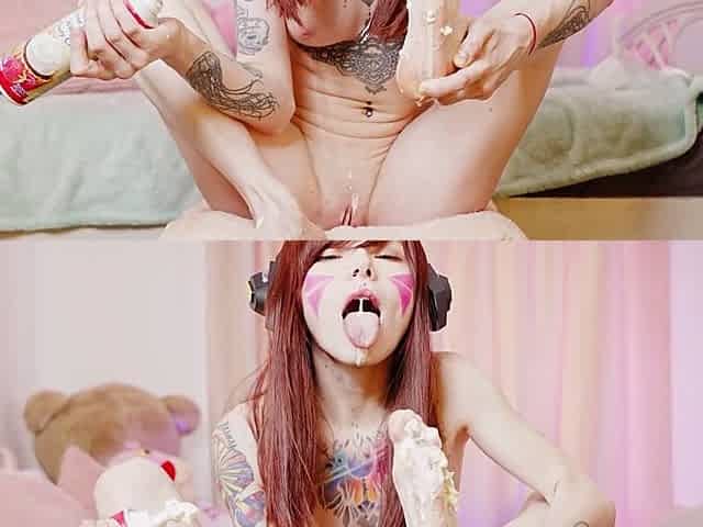 D.va indulges in foot play with your soles while enjoying food porn, featuring Karneli Bandi
