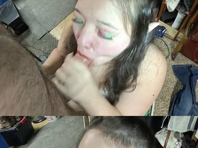 Naughty elf catches Santa's thick cock and takes a load in her mouth