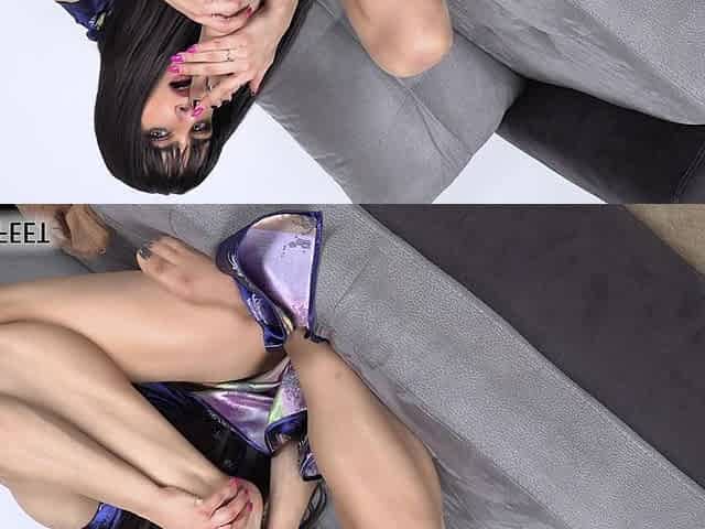 A Sexy Brunette Chick Missy Sinner Dressed as Biancaneve Posing Her Feet in Black Stockings