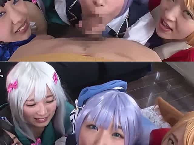 Cosplay FFM 3some for busty facesitting and BJ babes