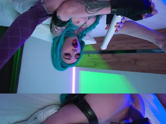 Slutty Jinx has fun with different dildos and gets cum on her face. Karneli Bandi