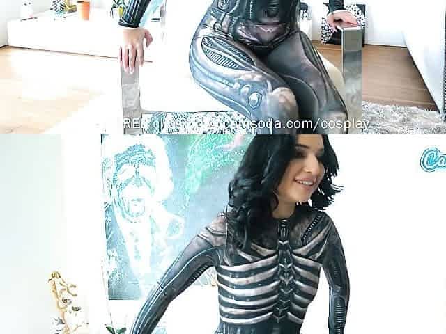 Young slut D.Va cums several times and stretches her pussy and ass with alien dildo until creampie