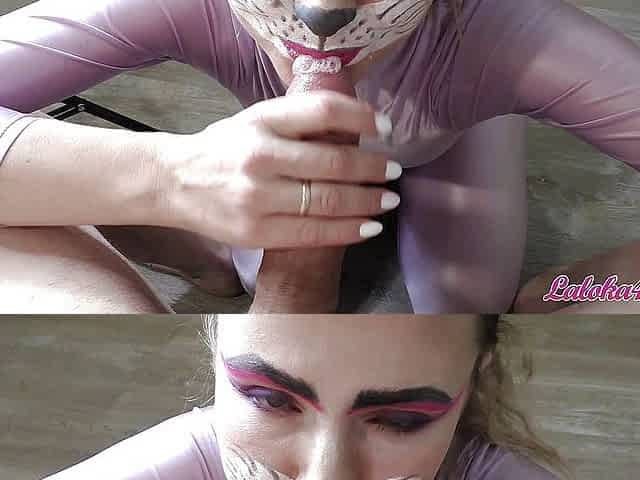 Bunny girl suck her masters cock & swallow cum