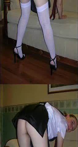 Sexy french maid in pantyhose shows you her ass and feet