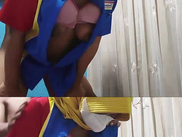Cosplay Uniform FFM Threesome Sex with two Big Boobs and Butts Girls