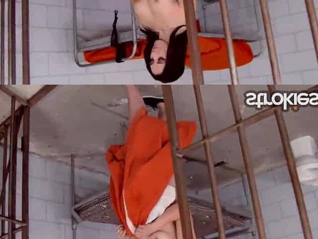 Strokies - Mandy Muse behind bards and trades freedom for a steamy tugjob