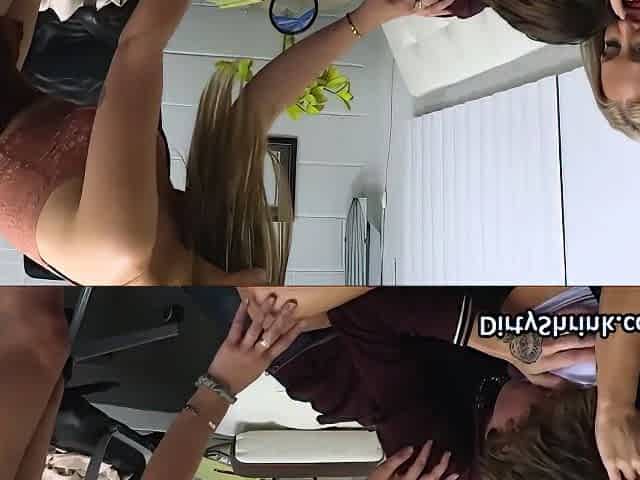 Hot Blonde teen 18+ And Her Step Mother Please Each Other With Passion On The Couch