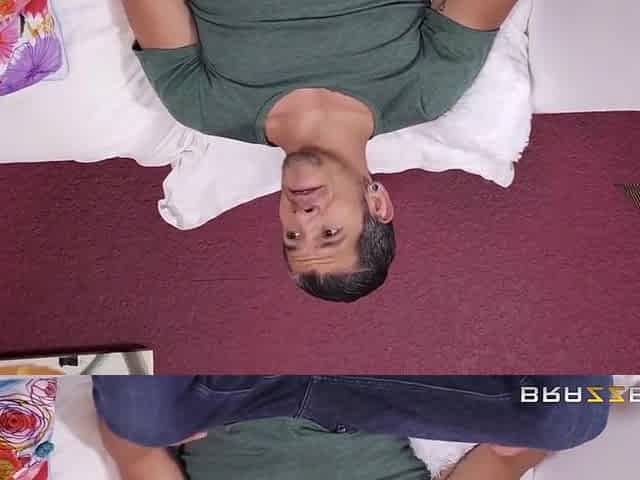 Dante Colle And Aliya Brynn In Pleasuring Bearded Dude On Leather Couch