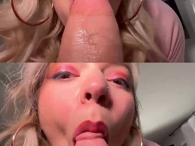 Slutty & knocked up blonde sucks & fucks on the couch