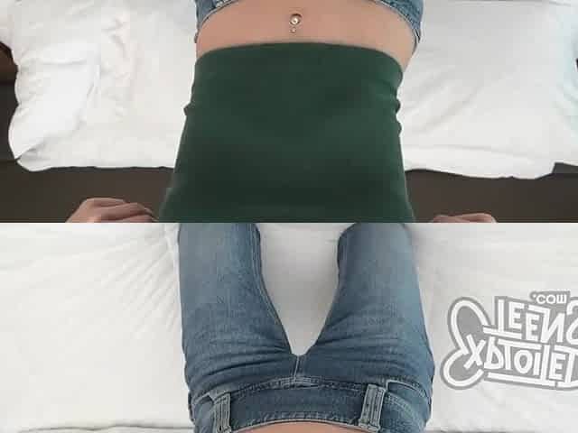 Hawt gal in short Tshirt out of pants in bedroom in couch with an grandpapa adult neighbour. Teenager