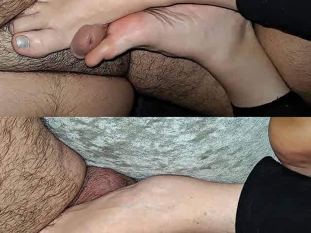 I get a slippery oily hand job and foot job from my girlfriend on the daybed