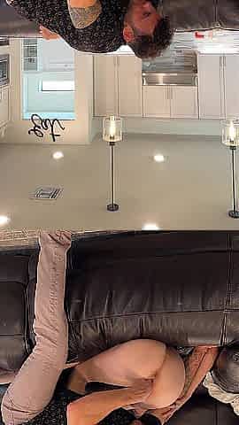 Fucked Hard Doggy Style on the Neighbor's Couch and He Cums on My Ass