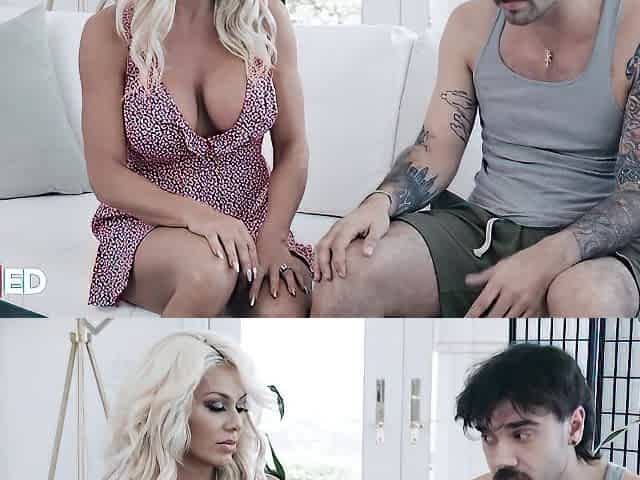 Nikki Sexxx busty blonde have group sex on couch