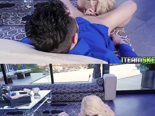 "Furious pretty starving blonde with nice ass rides a hard cock on couch"