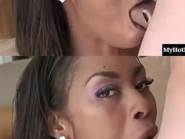 Cocksucking ebony slut fucked hard and creamed on the couch