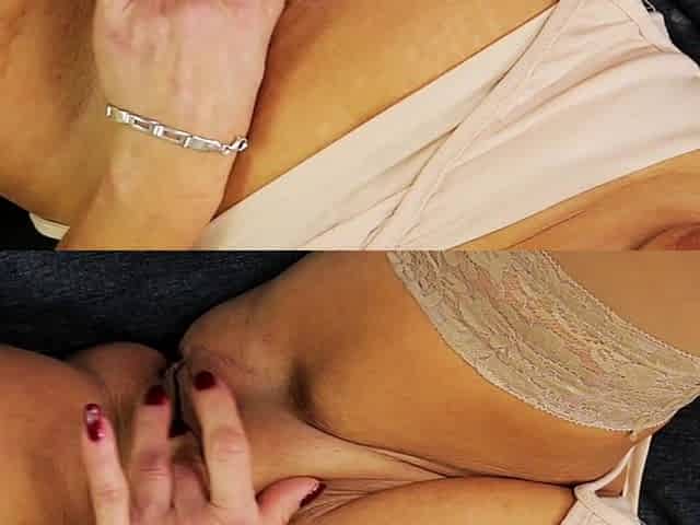 Horny Mature Lady Emily Devine Fingers Her Pussy on the Couch